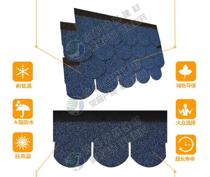 产品名称:鱼鳞型 产品规格:单层 产品颜色:海洋蓝 长度(mm):1000mm±3 mm 包装:每包21片
