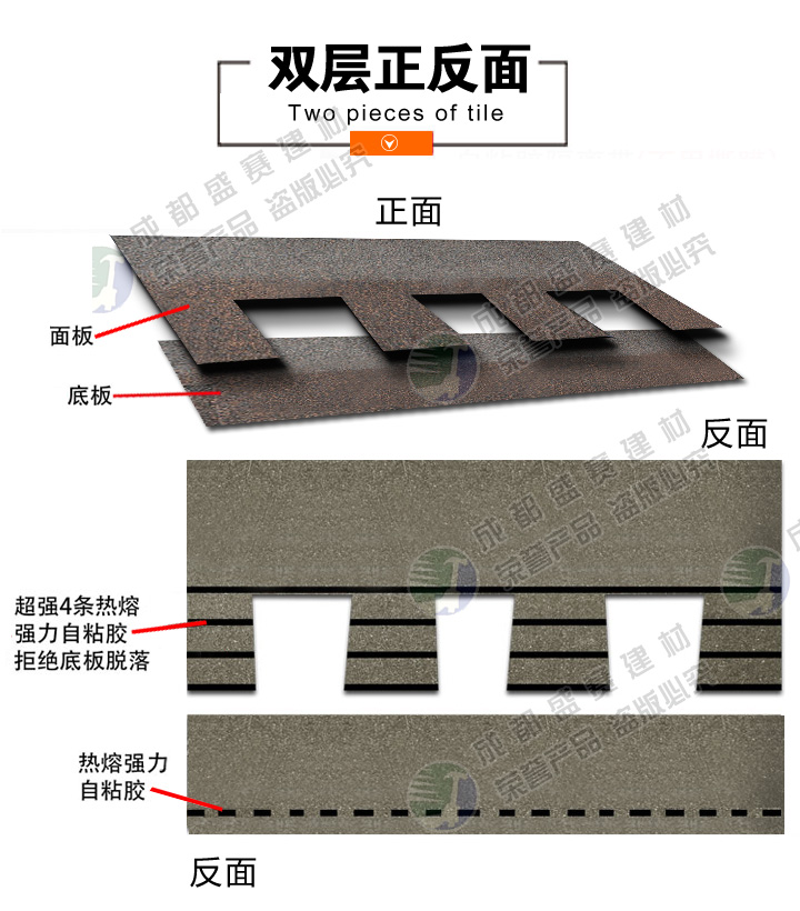 本款产品颜色丰富,一般适用于广泛应用于高档别墅、高档小区等工程,产品可自由裁剪,能成功覆盖于不同形状和不 同基层的屋顶。适用屋面坡度从15°到90°不同建筑。