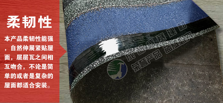 产品特点本款产品颜色丰富,一般适用于广泛应用于高档别墅、高档小区等工程,产品可自由裁剪,能成功覆盖于不同形状和不同基层的屋顶。适用屋面坡度从15°到90°不同建筑。
